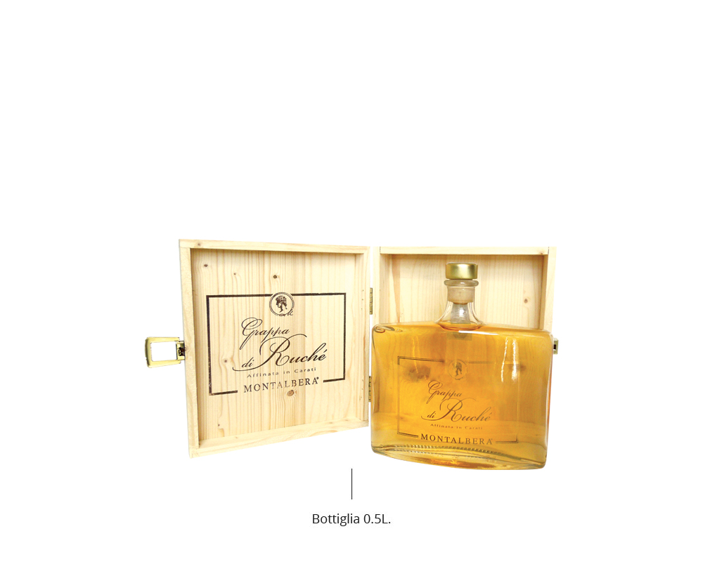 Der Grappa di Ruchè Montalbera wird ausschließlich aus dem Trester der gutseigenen Ruchè-Trauben gewonnen, die von Weinbergen mit über 20 Jahren stammen. Die Verarbeitung erfolgt in entsprechenden Vakuumbottichen, damit kein olfaktives Element verlorengeht, und die anschließende Destillation wird in diskontinuierlichen Dampfdestillierkolben vorgenommen.